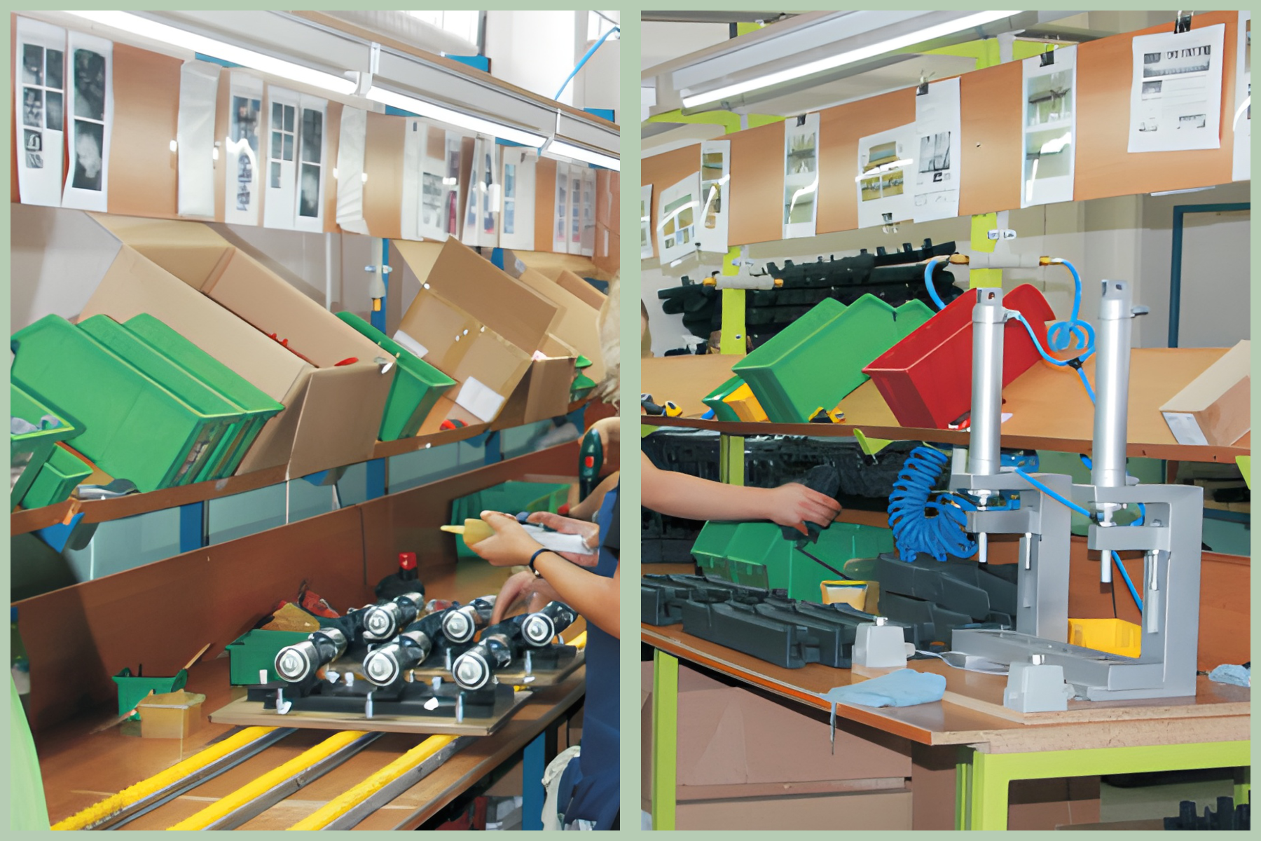 Zgodnie z potrzebami klienta detale produkowane z tworzywa sztucznego poddajemy procesowi montażu finalnego wraz z konfekcjonowaniem oraz pakowaniem wyrobów w opakowania zbiorcze. Wszystkie przyrządy zwiększające wydajność procesu montażu wykonujemy we własnym zakresie.